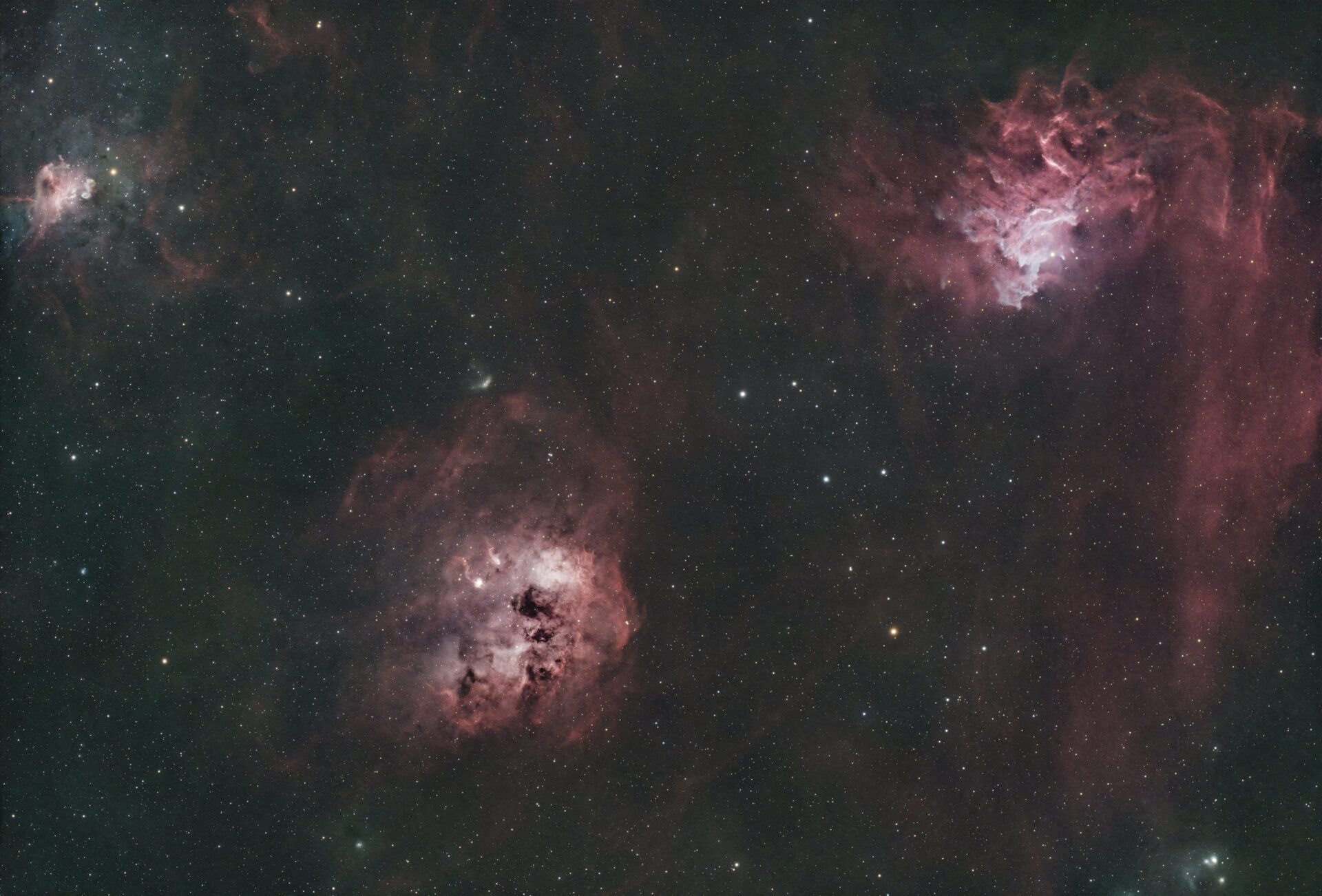 特にIC410の内部にある黒い筋は、星雲の立体感を強調してくれる重要なアクセント。