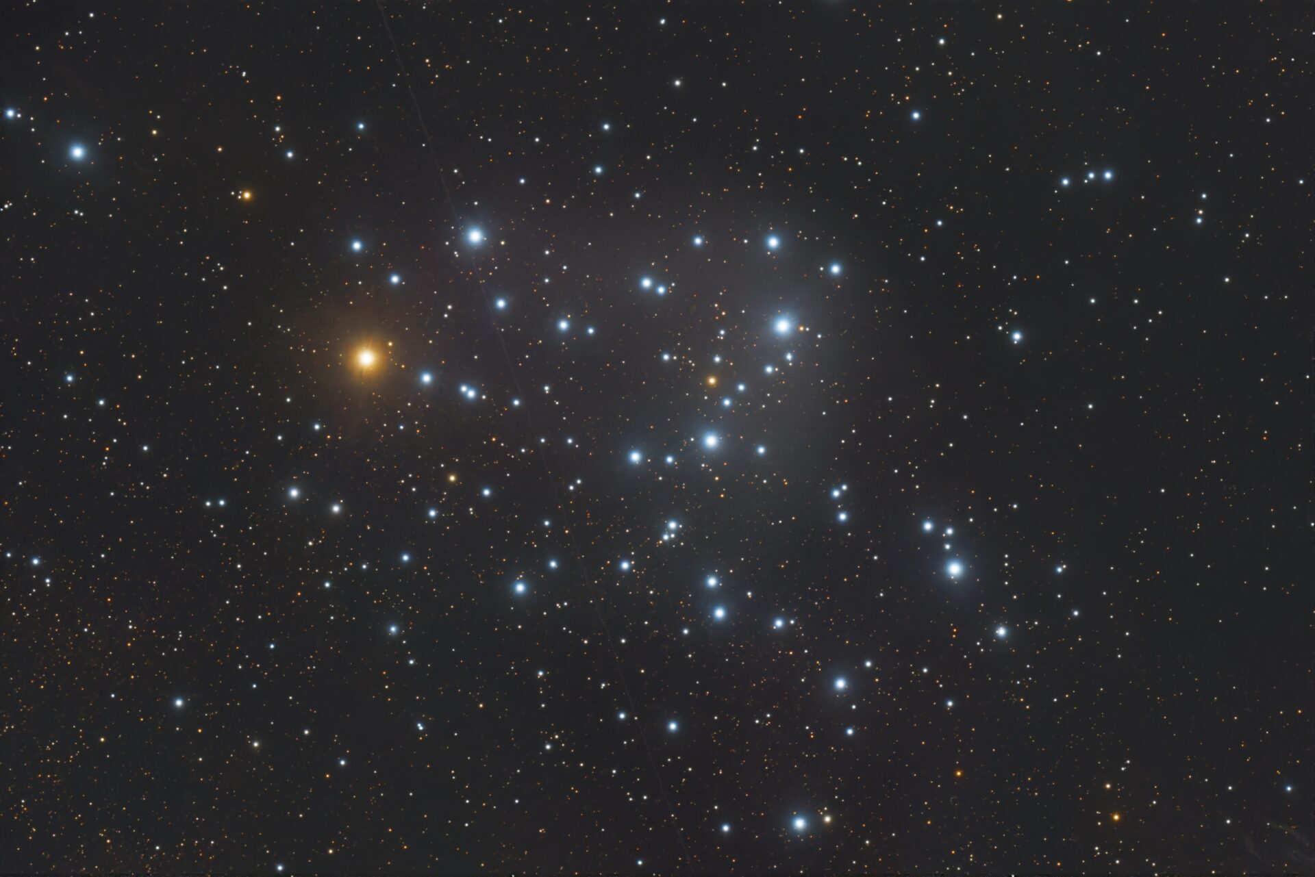 露光はわずか20分。いわゆる「星の集まり」で派手さはなく、撮影例を探してもあまり多くは出てこない対象だ。人気はないのかもしれないけれど、大小さまざまな星の色彩が混じる姿は、眺めていて飽きない。