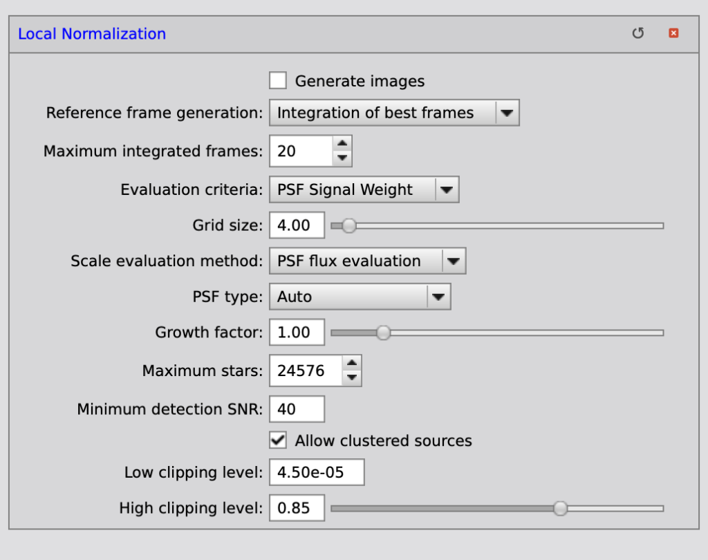 | Reference frame generation | 正規化の基準フレームの作成方法 | 基本は Integration of best frames |