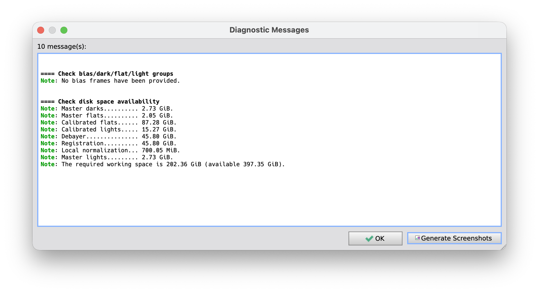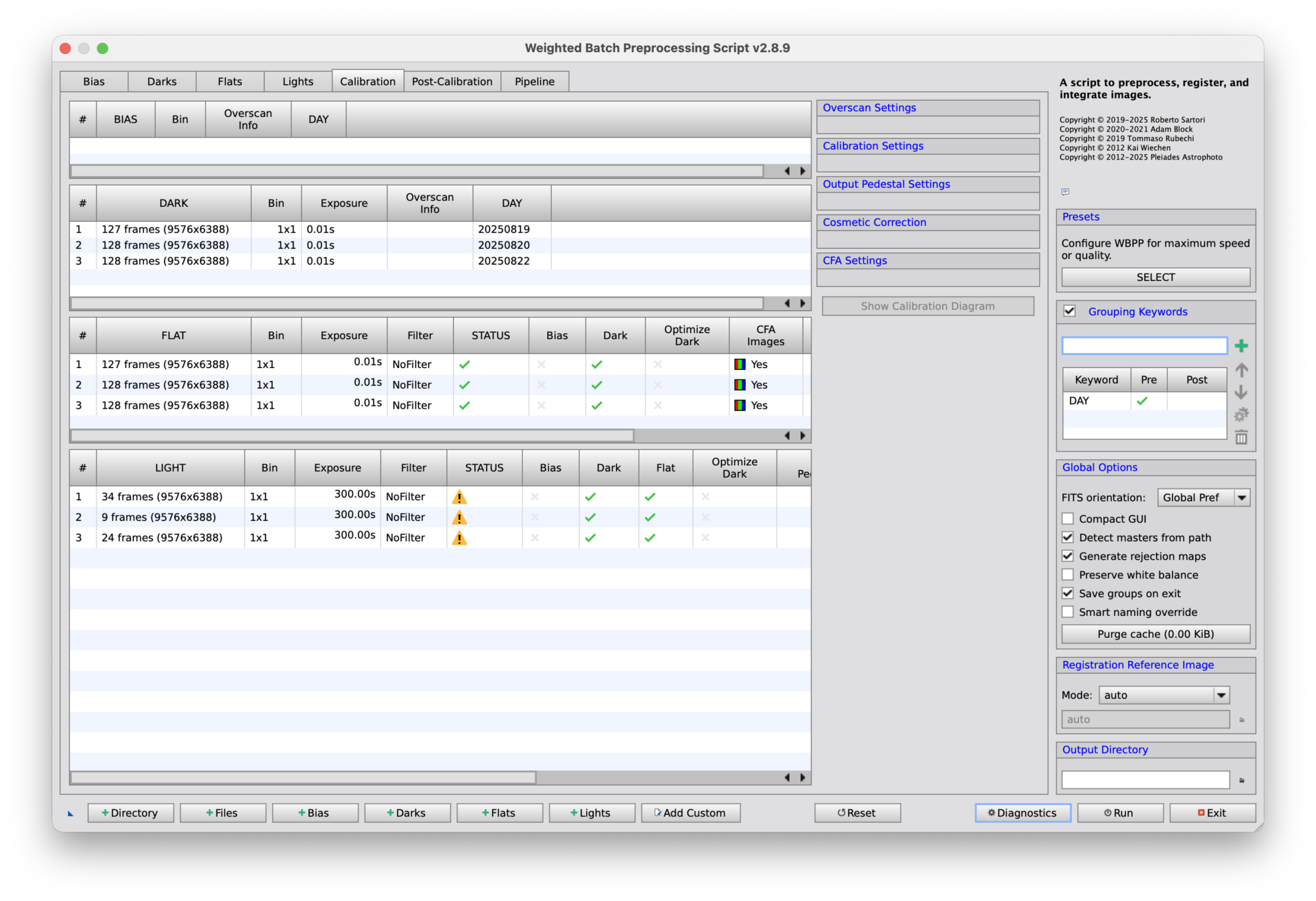 ⚠️ NoteNo bias frames have been providedBiasフレームが読み込まれていない運用次第では問題なしCMOS+FlatDark運用なら無視可。Bias必須運用なら追加