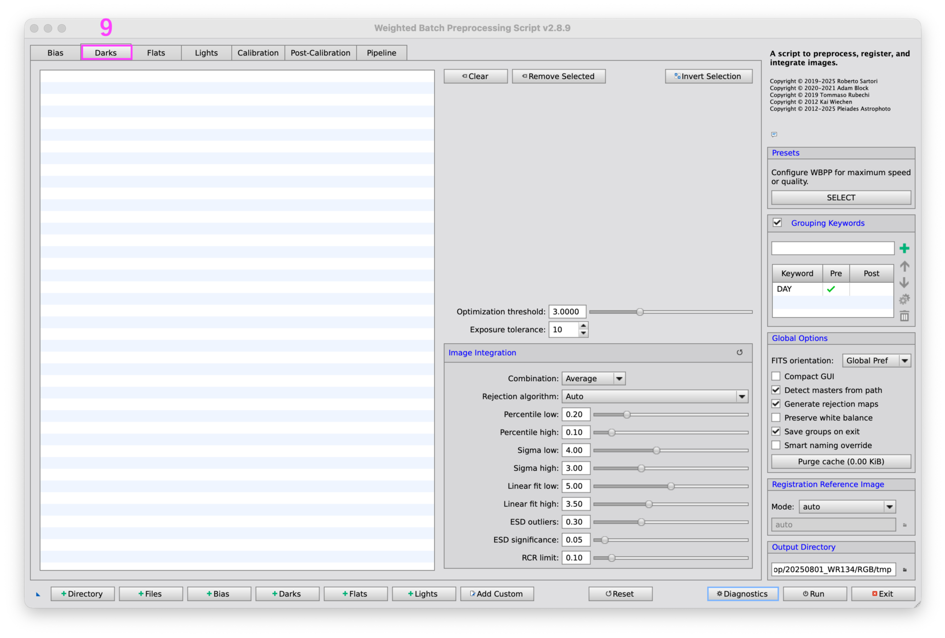 WBPPの Darks タブ は、ライトフレームに含まれる 暗電流・固定パターンノイズ・ホットピクセル を除去するための非常に重要な補正工程を担っています。