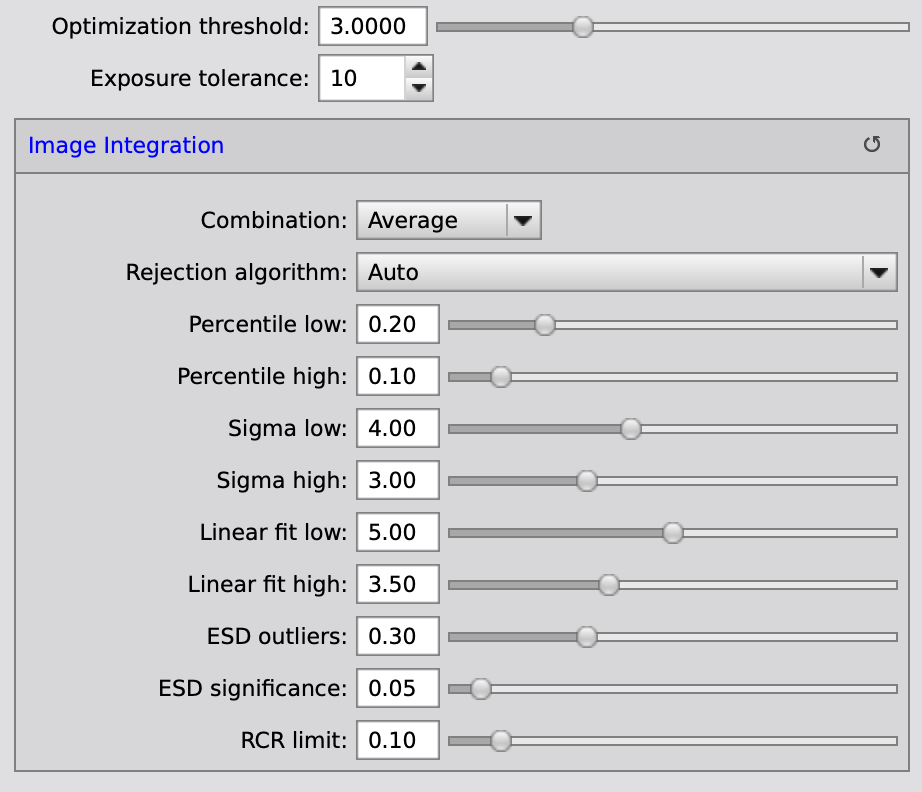 をもとに、最適なリジェクション手法(Sigma / Linear Fit など)を自動選択します。