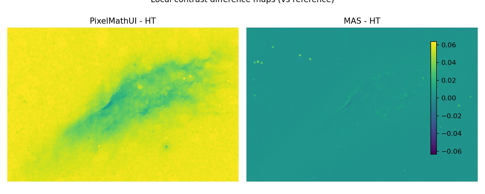 PixelMathUI、STF+HistogramTransformation(HT) と比較しながら、